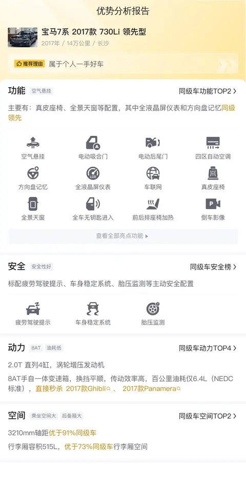 综上所述的新车含税价、用车成本、市场行情、优势分析、同款比价等数据仅供参考。在配置部分,因为二手车非标品,车辆可能会存在配置改装的情况,具体车况信息需要线下结合车辆实际情况进行综合参考。